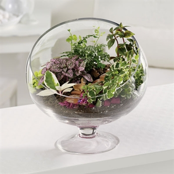 Like a mini meditation garden, our terrarium transports the senses. Five varieties of plants are nestled together, creating a wonderous world apart.